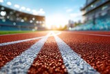 Close-up of asphalt racetrack with detailed texture and vibrant curb markings