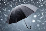 Close-up of a rainy weather umbrella covered with snow and water droplets