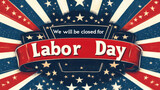 Labor Day holiday announcement with patriotic-themed artistic background design