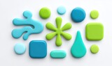 Colorful abstract 3D elements in blue and green shades on white backdrop