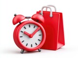 Red alarm clock with shopping bag symbolizing timely offers and savings