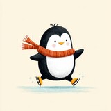 Adorable penguin wearing a scarf ice skating joyfully on a wintery day