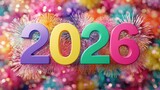Colorful fireworks and vibrant numbers symbolizing the year 2026 celebration