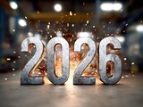 Metallic 2026 adorned with sparks celebrating the New Year with bright energy
