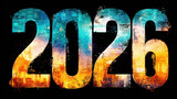 Bright colorful futuristic design showcasing the year 2026 in neon letters