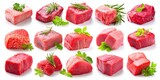 Colorful sliced vegetables falling isolated on white background. Fresh tomatoes, cucumbers, and bell peppers.