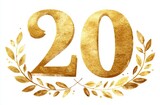 Golden Number 20 Adorned with Elegant Leaf Wreaths