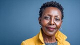 Portrait of a confident Kenyan businesswoman in a yellow jacket and earrings