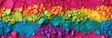 Colorful powdered pigments arranged in a vibrant rainbow-like horizontal pattern