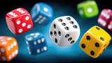 Colorful dice floating in the air with a dynamic and vibrant composition