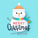 Cute snowman with colorful scarf wishing Merry Christmas and Happy New Year