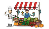 Koch kauft regionales Gemüse bei Marktstand im Hofladen