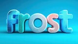 Frost Word Rendered In 3D With Icy Texture On Blue Background For Winter Holiday Season And Cold Weather Concepts And Designs