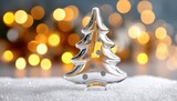 Silver Christmas Tree Ornament On Glittering Snow With Bokeh Lights Background For Holiday Season And Festive Celebrations Shiny Decoration