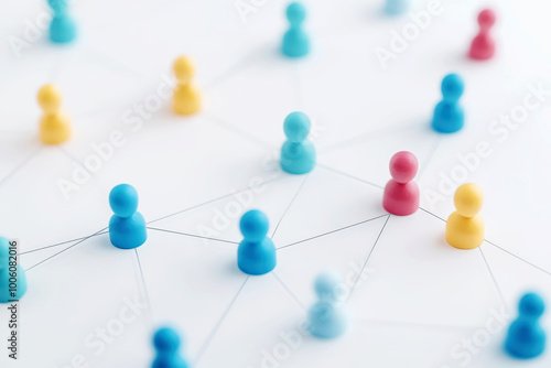Colorful network of connected figures symbolizing diverse social interactions