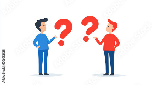 Two illustrated figures stand with large red question marks, symbolizing the concept of making choices or decisions.