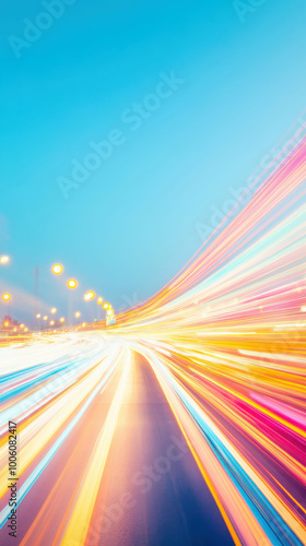 Dynamic time-lapse movie poster featuring vibrant light trails in a futuristic cityscape at night