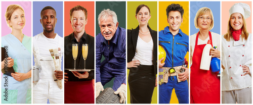 Quadrat Collage aus bunten Portraits von Menschen in vielen Berufen