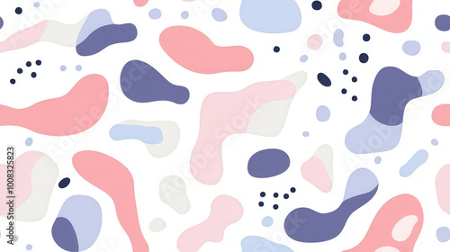 Abstract seamless pattern with lilac and grey organic shapes on a white background featuring a playful and modern design