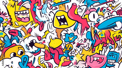 Vibrant comic book inspired seamless pattern with exaggerated lines