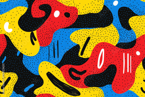 Colorful abstract pattern with playful shapes and squiggles seamless design