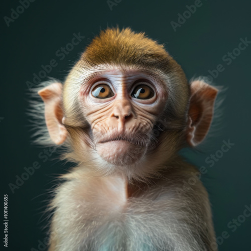 Close-Up Portrait of a Rhesus Macaque Monkey in Studio Setting