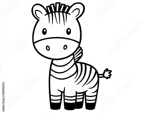 Cute kawaii zebra illustration in minimalist style for children's coloring book on white background, perfect for fun and creative activities