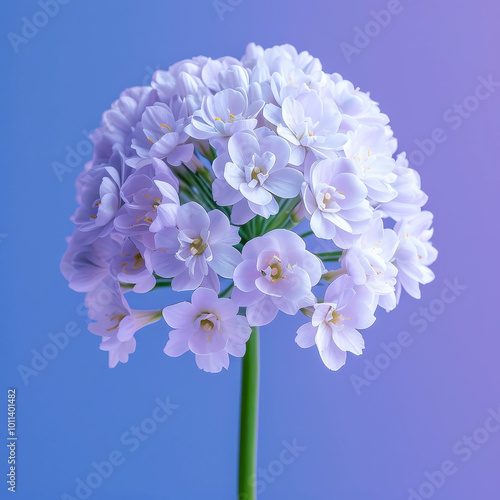 Studio shot of a beautiful purple Hyacinth flower showcasing its intricate petals and vibrant color on a soft blue background