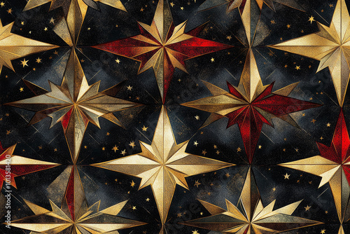 Intricate seamless pattern with overlapping stars and geometric shapes