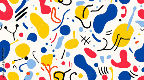 Colorful abstract pattern with playful shapes and squiggles