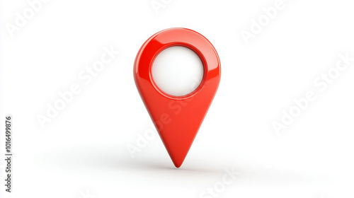 Red location pin icon standing isolated on white background, symbolizing navigation and geographic coordinates for travel and digital mapping applications