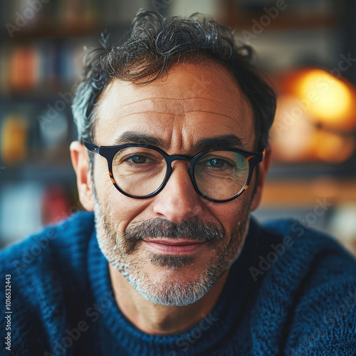 Close-up of a smiling Middle-Eastern professional in a cozy workplace