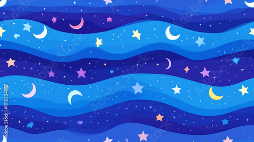 Seamless starry night sky with moons and colorful stars