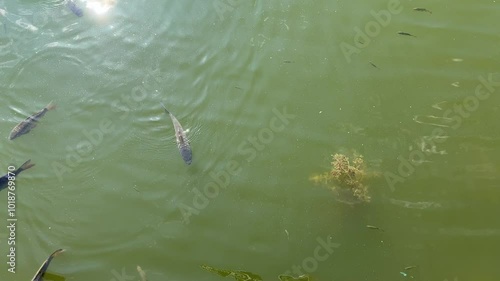 Underwater scene with sunlight illuminating a pebble-covered ocean floor