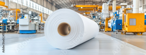 Large white paper roll on the move on a manufacturing line in a modern industrial factory setting