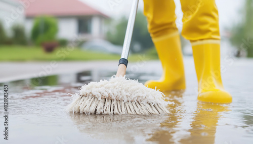 Applying plaster to a wall with a trowel and wearing orange gloves