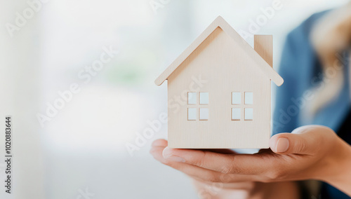 Real estate agent holding miniature house model for property investment