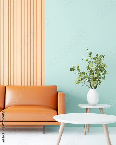 Minimalist decorative console with framed art and branch arrangement on white wall