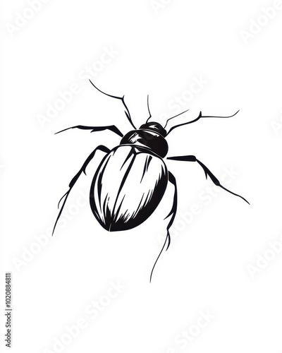 Minimalistic stick figure drawing of a beetle in black ink, showcasing elegant simplicity and artistic expression in monochromatic style
