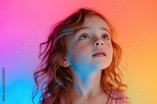 Beautiful child portrait highlighting youthful skin care in neon hues
