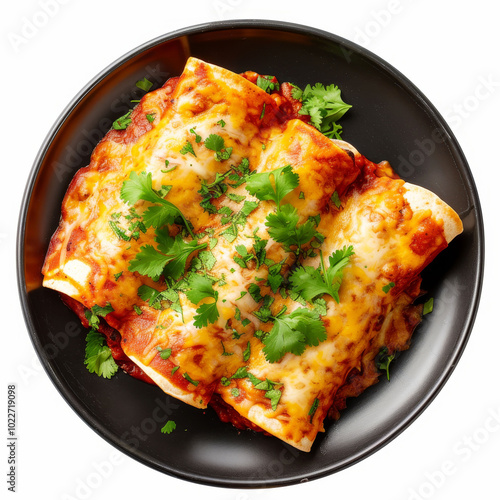 Top view of vegetarian enchiladas on a plate with garnished cilantro