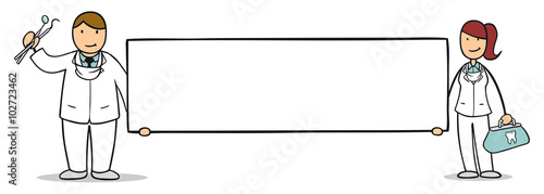 Fensterputzer und Gebäudereiniger halten leeres Schild
