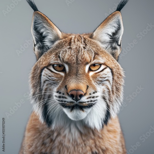 Close-up portrait of a lynx in a professional studio setting, capturing the striking features of this magnificent wild feline.