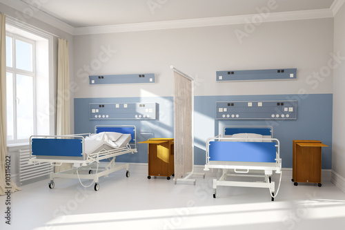 Doppelzimmer mit leeren Betten im Krankenhaus