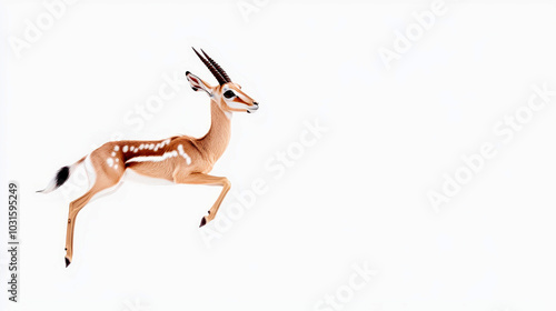 Charming gazelle depicted in a whimsical floating pose against a bright white background