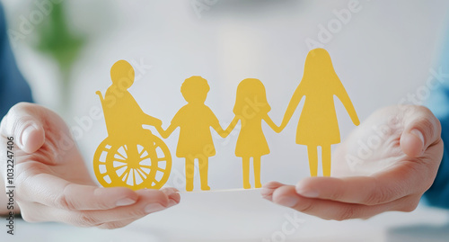 Inclusive accessibility concept with diverse people in wheelchairs on a gradient background