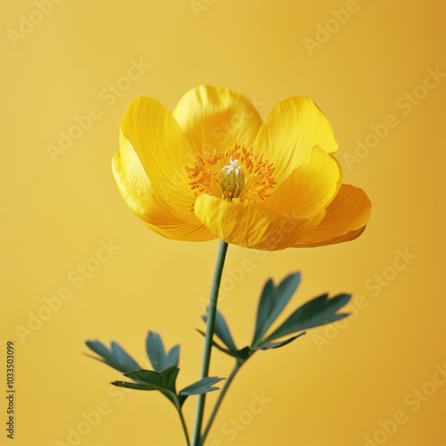 Bright and vivid buttercup flower studio shot with a beautiful yellow blossom against a matching background