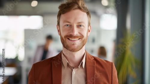 Portrait of a smiling businessman in a modern office, confident and approachable