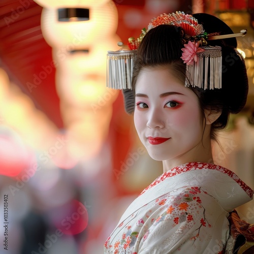 Traditional Geisha in Kimono with Elegant Hair Accessories
