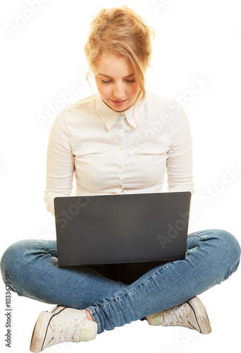 Frau mit Laptop Computer als Blogger oder Influencer